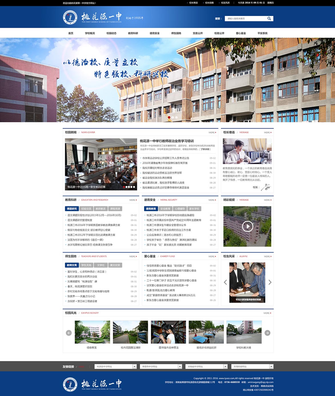 沅水之濱,桃花源里,有一所名冠三湘的學校。沅水不息,為她注入了不竭的發(fā)展動力;屈子行吟,為她增添了濃郁的人文氣息。在這里,亭臺樓閣匠心獨運,小橋流水相得益彰,古樹名花錯落有致,花馥書香交洽融匯——這就是被譽為“桃花源里一奇葩”的桃花源一中。